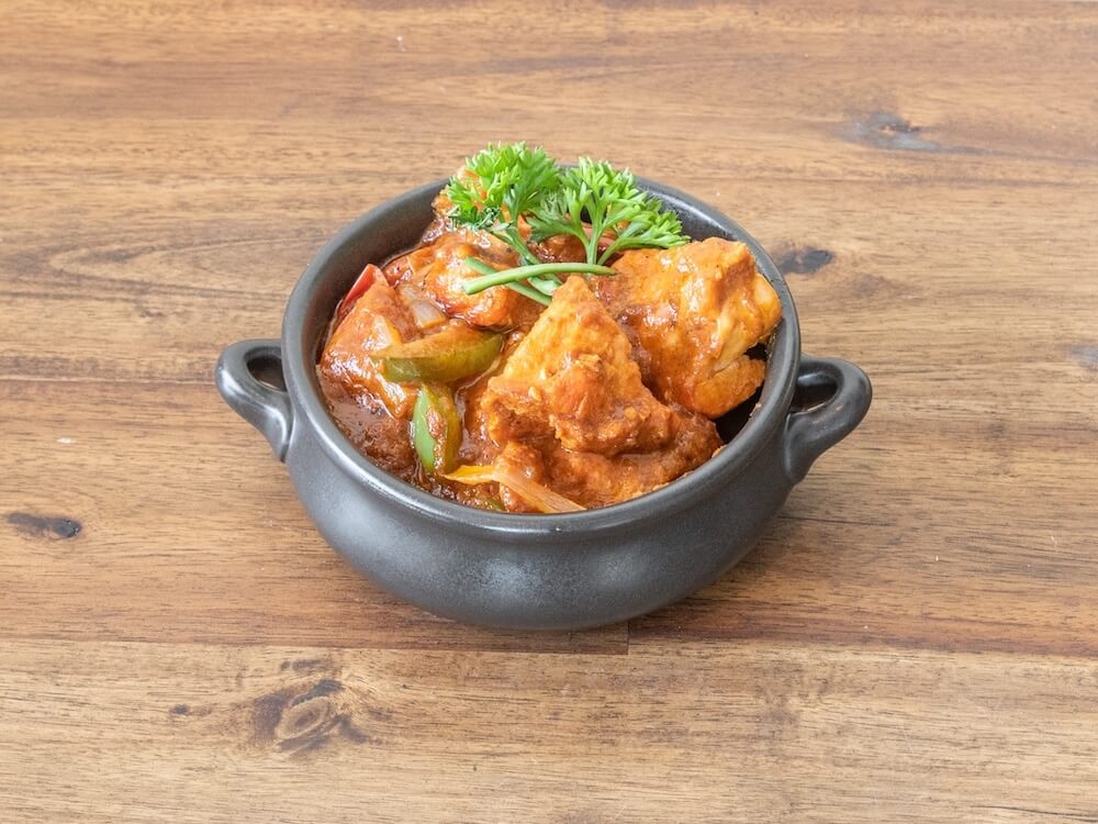 Char-grilled chicken tossed with capsicum, onion and tomato in a rich, spiced cream sauce.