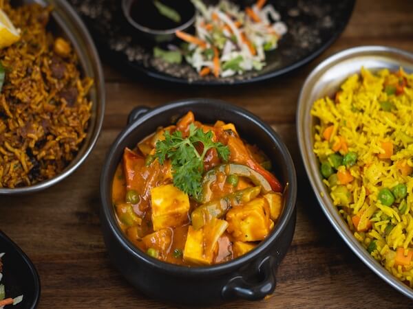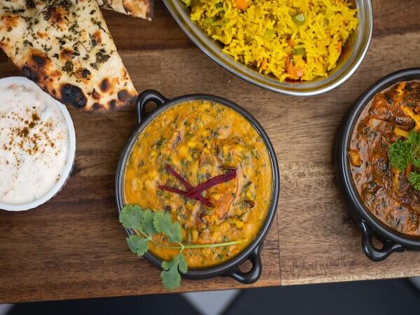2 x Curries of your choice, (only veg and chicken curries) 2 x Rice, 1 serve Pappadums, 1 x small Raita and 1 Plain Naan (upgrades available)